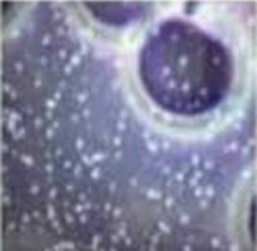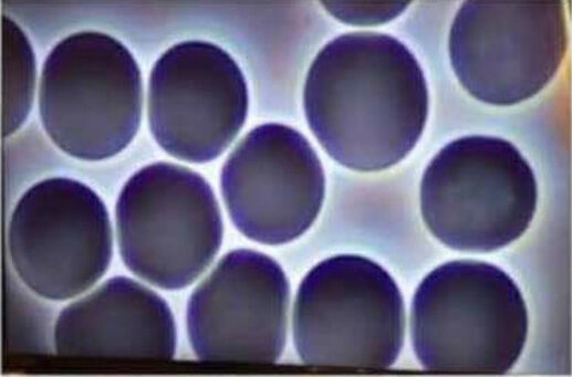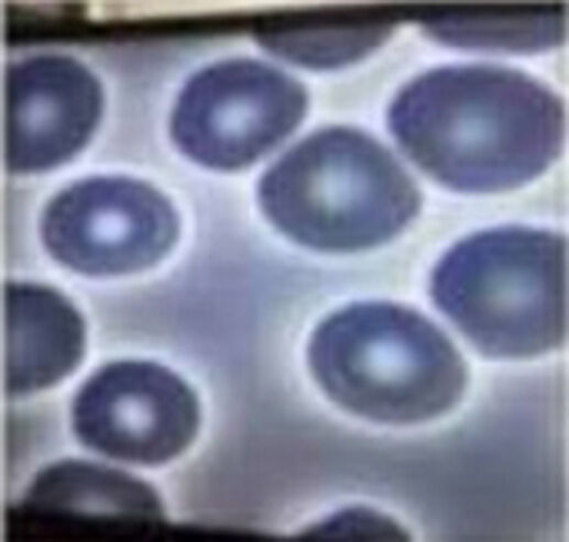 すぐ上の4番目の最後の画像は、この人の血球が滑らかで対称的ではなくなっていることを示しています。それらは現在、しこりや突起で覆われています。