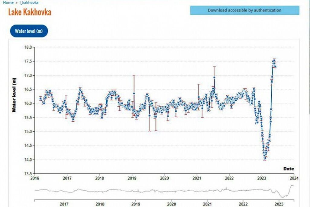 フランスの衛星サービスでは、湖やノヴァ・ハコフカ・ダムなどの貯水池の水位を測定しています。