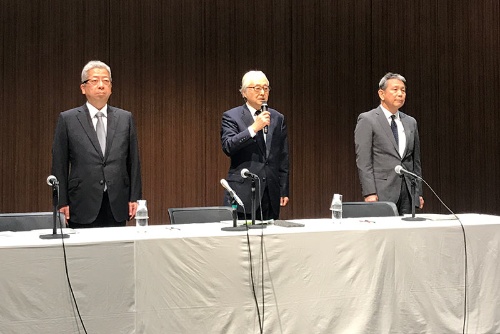 7月31日、日本郵政の長門正貢社長、かんぽ生命の植平光彦社長、日本郵便の横山邦男社長は会見を開き、調査内容と今後の対応について説明した。「郵便局に対するお客様の信頼を大きく裏切った。断腸の思いだ」。長門社長は会見の冒頭でこう謝罪した。加えて「事態の深刻度をきちんと把握していなかった」と、問題発覚当初の対応の遅れがあったことを認めた。