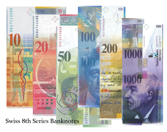 現在、ヨーロッパでユーロに対するヘッジを行ってきたスイスは、予告なしに通貨の発行全体をキャンセルしました。これは、おそらく買いだめで使用された最大のノートである1,00SFノートを含む第8シリーズと呼ばれます。