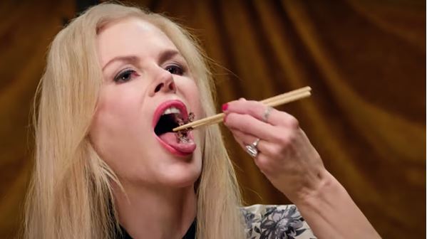 まず、ニコール・キッドマン[Nicole Kidman]が「マイクロ家畜」と呼ぶ生きた昆虫を食べている不気味なビデオである。