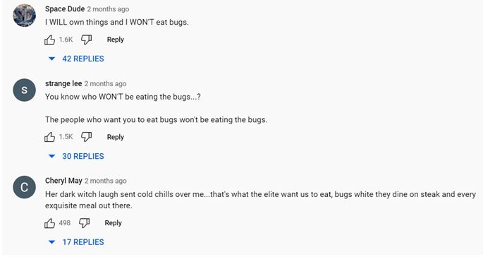 そう、大物映画スターが、あなたにも同じように食べるように説得するために、カメラに向かって半強制的に昆虫を食べさせられているのだ。これは、陳腐なプロパガンダだ。幸いなことに、YouTubeのコメントは私たちに希望を与えてくれる。以下は、その代表的なものである。